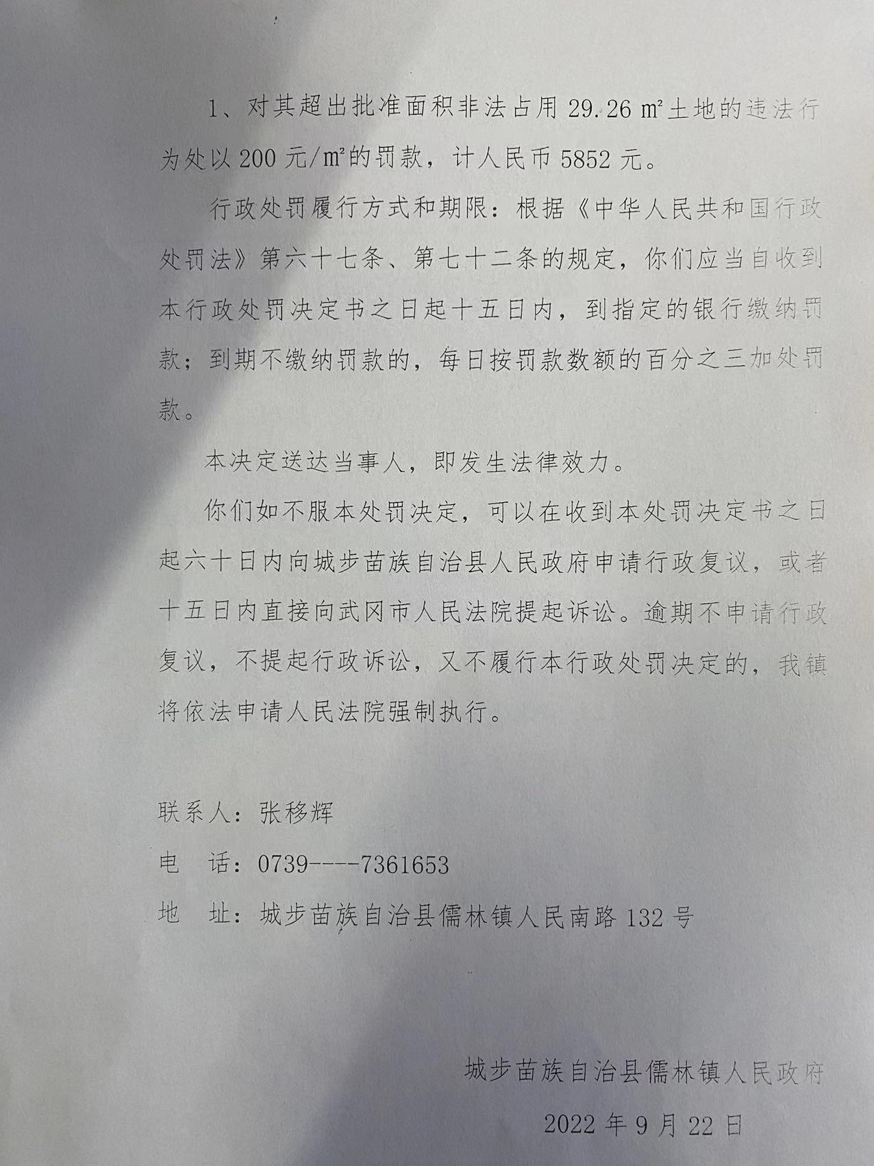 体育betvictro伟德客服儒林镇人民政府行政处罚决定书