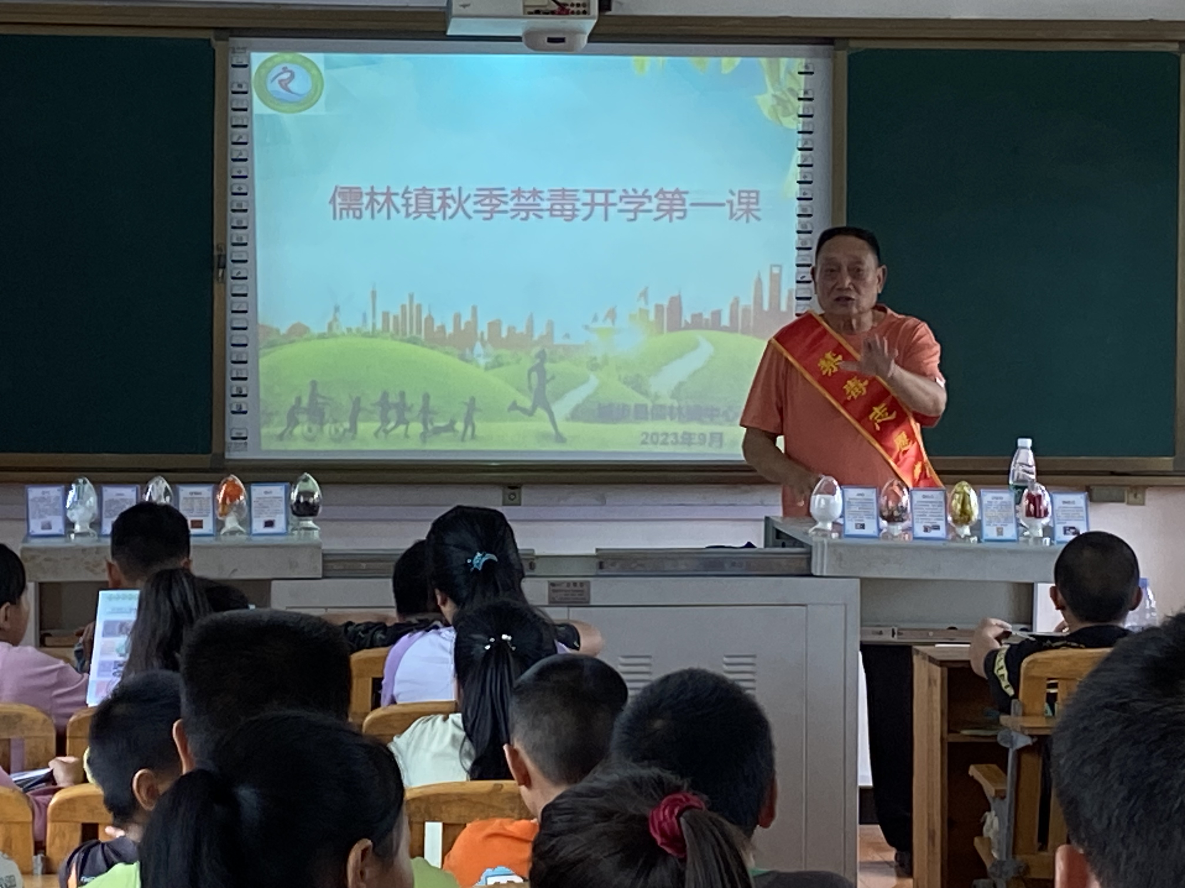 县禁毒协会会长张向荣给学生上了一堂生动的禁毒课。让学生认识了毒品,明白毒品的危害,引导学生养成良好的生活习惯,崇尚科学健康的生活方式,时刻保持高度的警惕,珍爱生命远离毒品,拒绝不良诱惑。