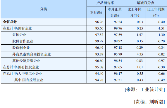 2022年湖南省规模工业产品销售率(1-10月)