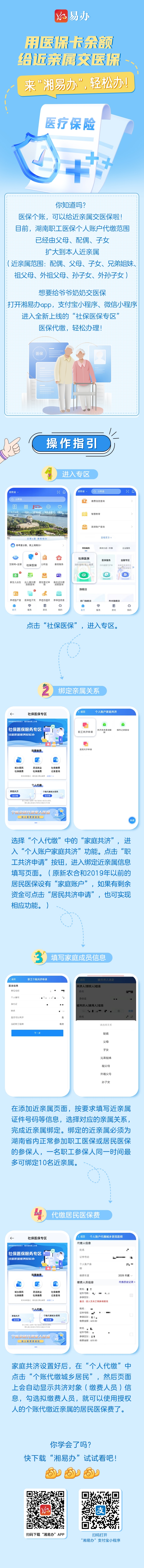用医保卡余额给近亲属交医保,来“湘易办”,轻松办!