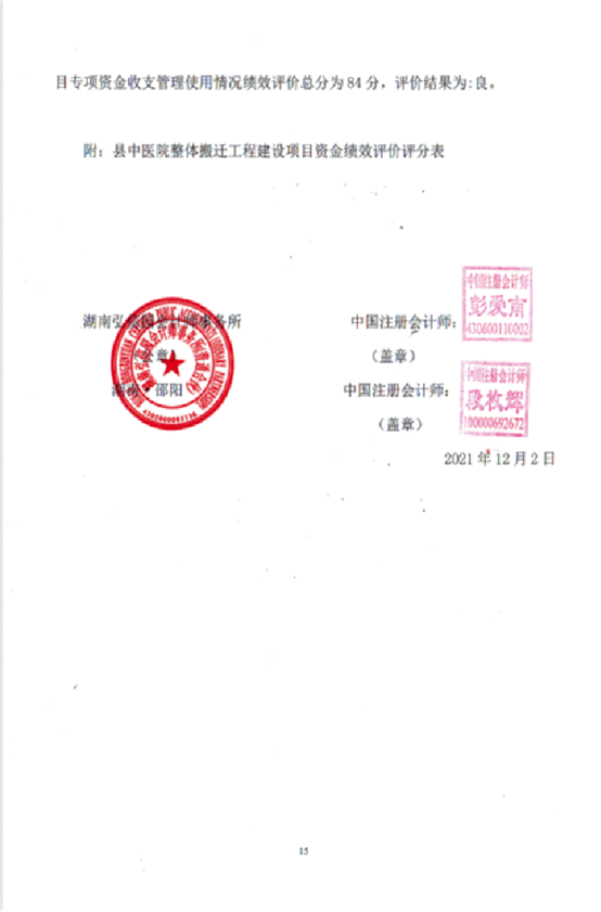湖南弘信园所[2021]绩评字第558号