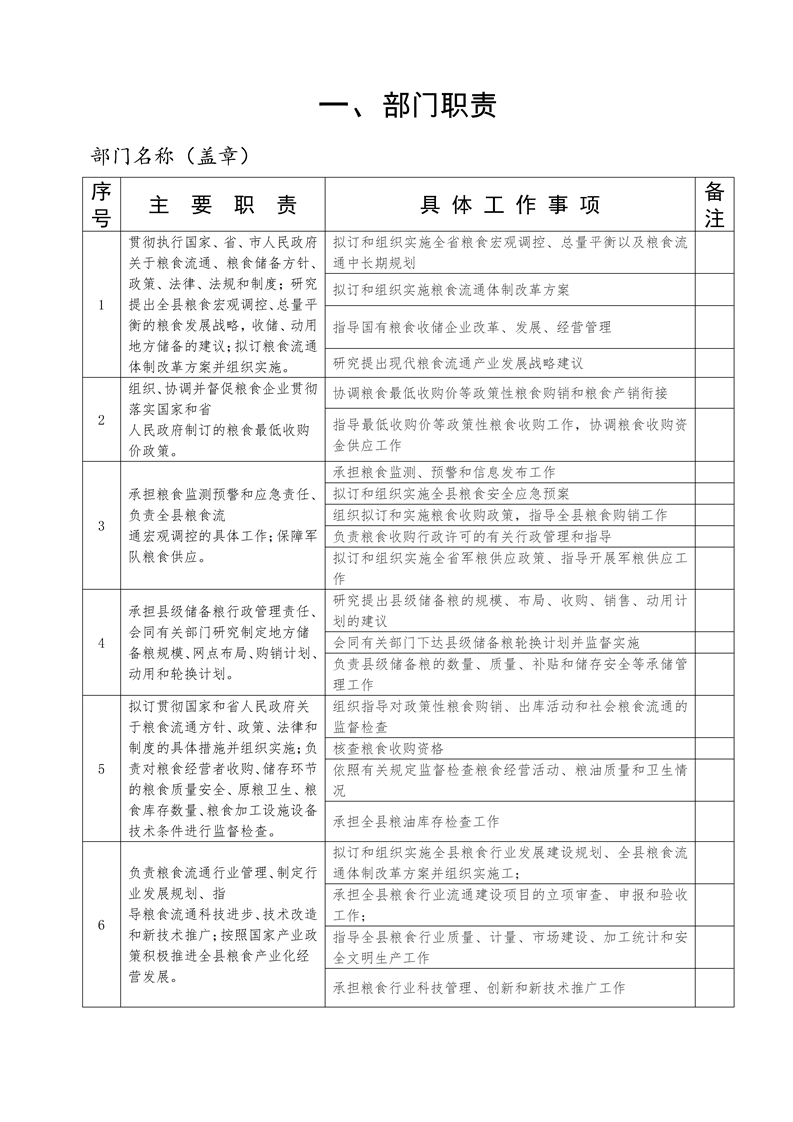 粮食局责任清单